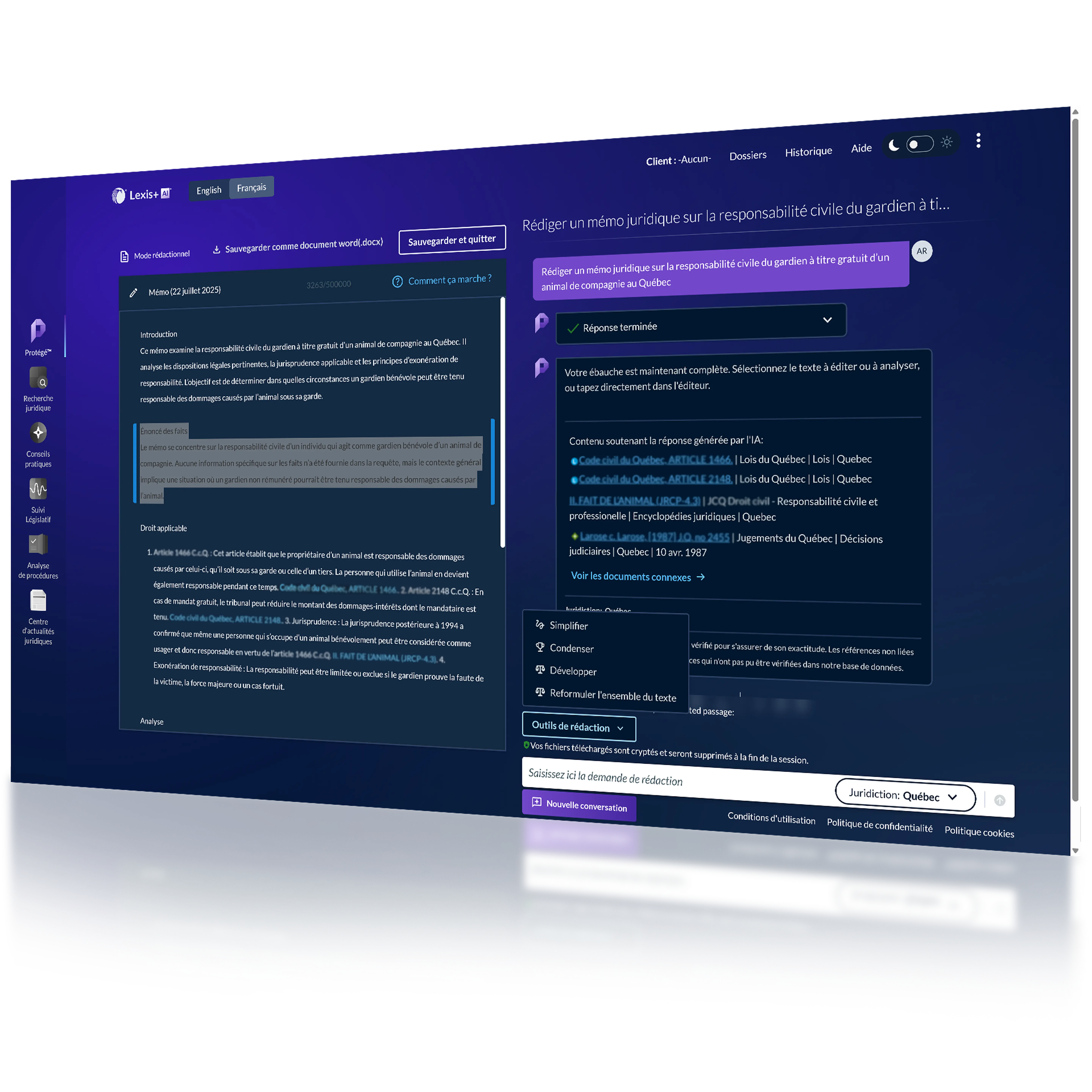 Lexis+ AI est une solution intégrée pour la rédaction juridique, la recherche et l’analyse.